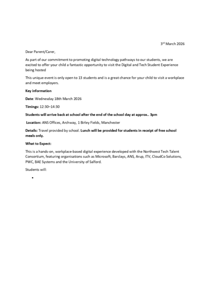 Year 8 ANS Visit Permission Letter (March 2026)